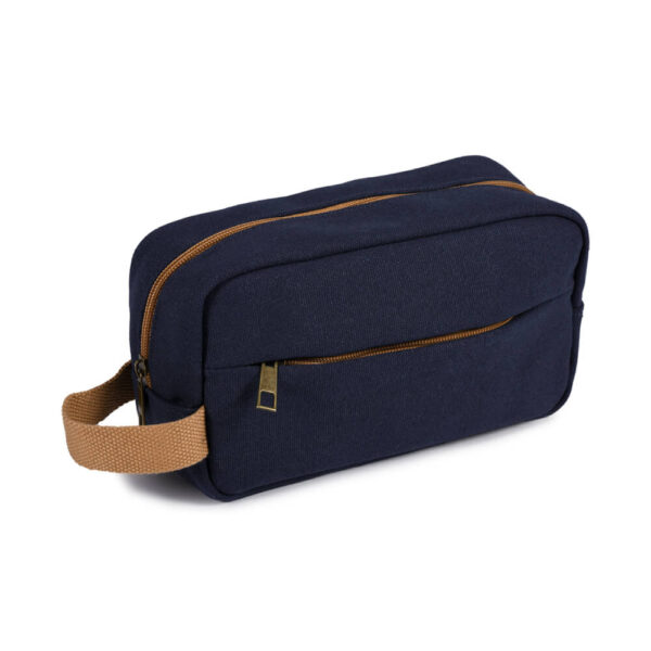 Beauty case imbottito in policotone canvas con scomparto zip, tasca frontale e maniglia. Dimensioni: 23x13x9