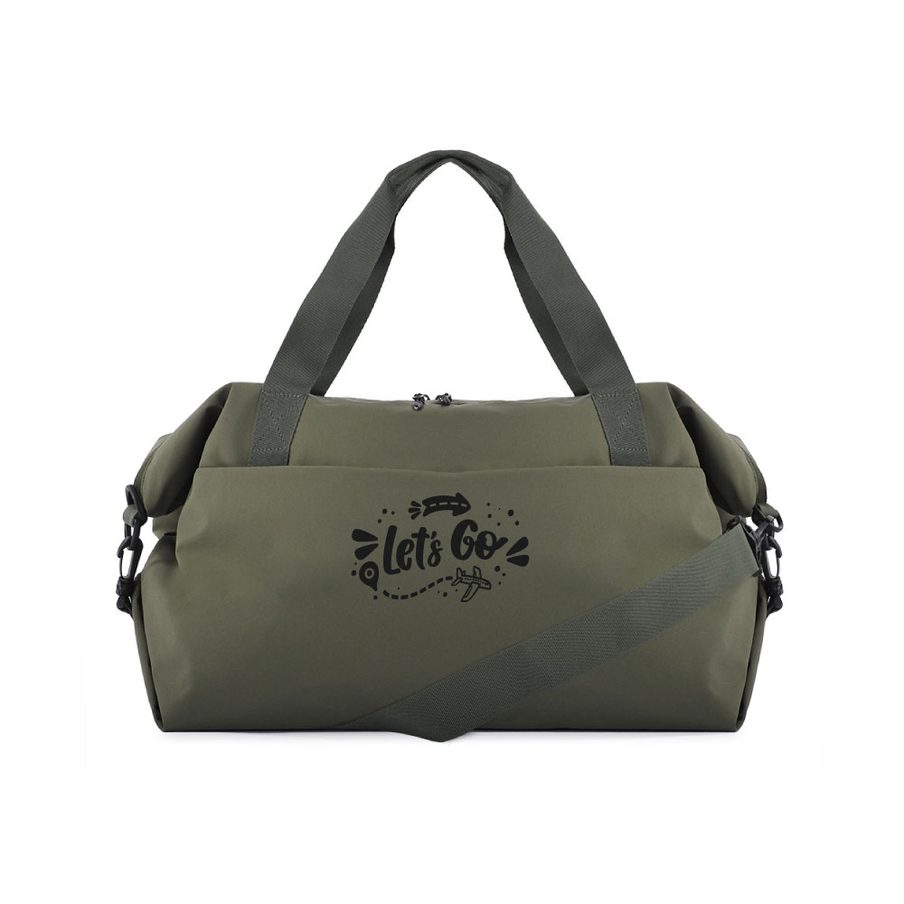 Borsa da viaggio Olive Premium in poliestere 75D, con ampio scomparto principale e tasche interne ed esterne con zip. Dotata di tracolla regolabile e staccabile per maggiore comfort e versatilitร .