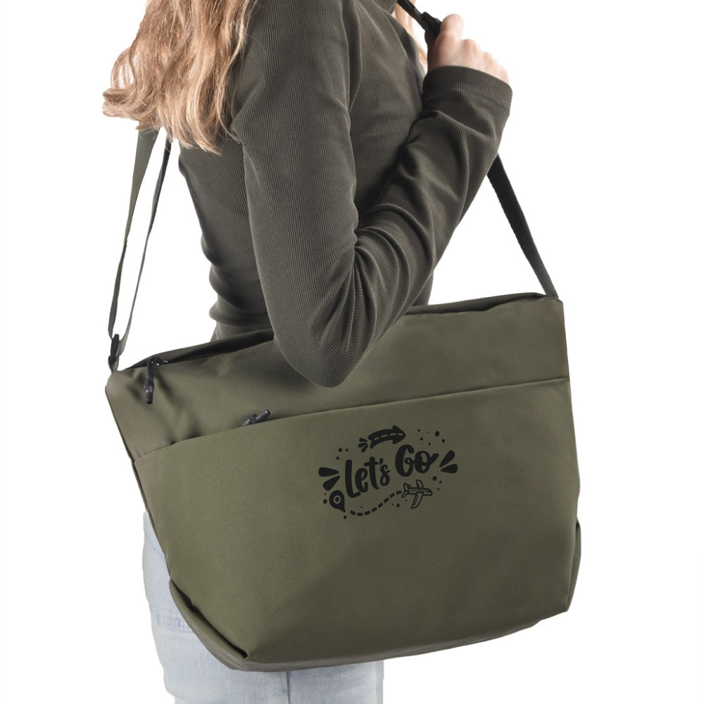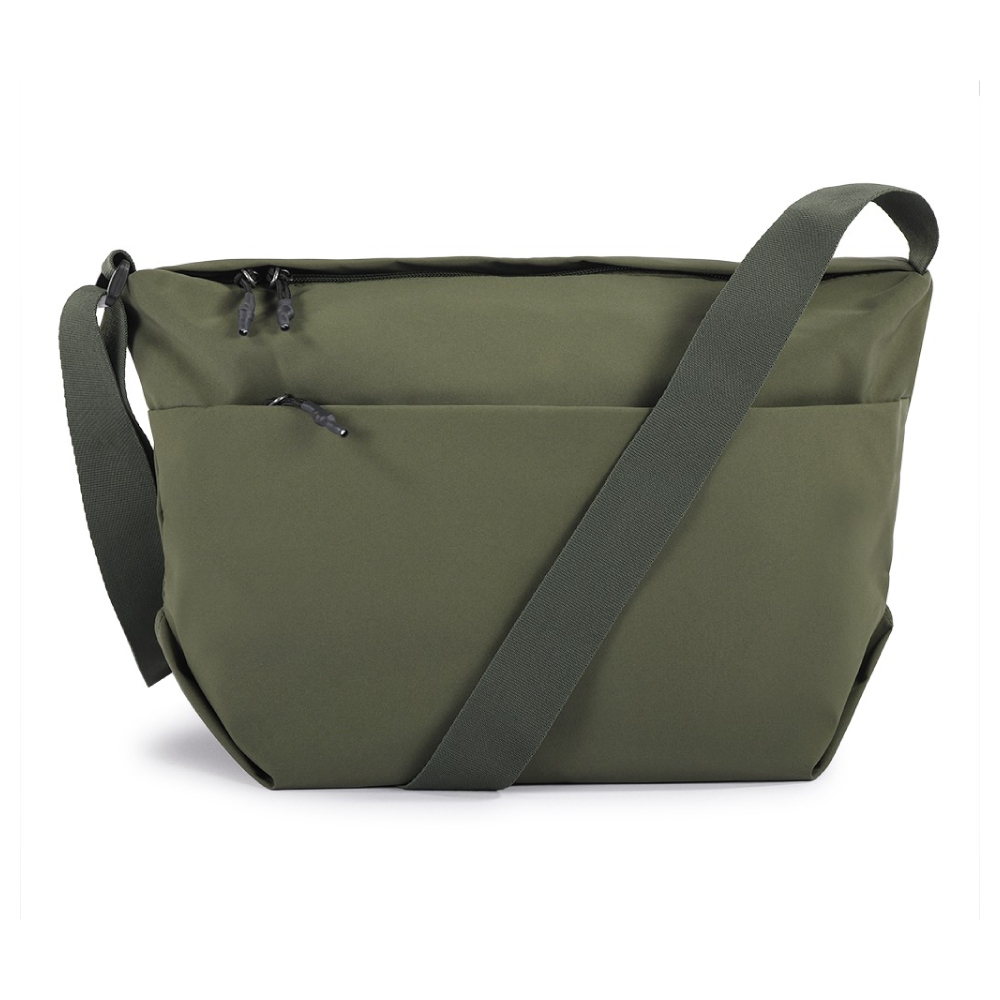 Tracolla Olive Premium in poliestere 75D, con ampio scomparto principale e tasche con chiusura a zip per unโorganizzazione sicura. Dotata di cinghia regolabile per maggiore comfort e praticitร .
