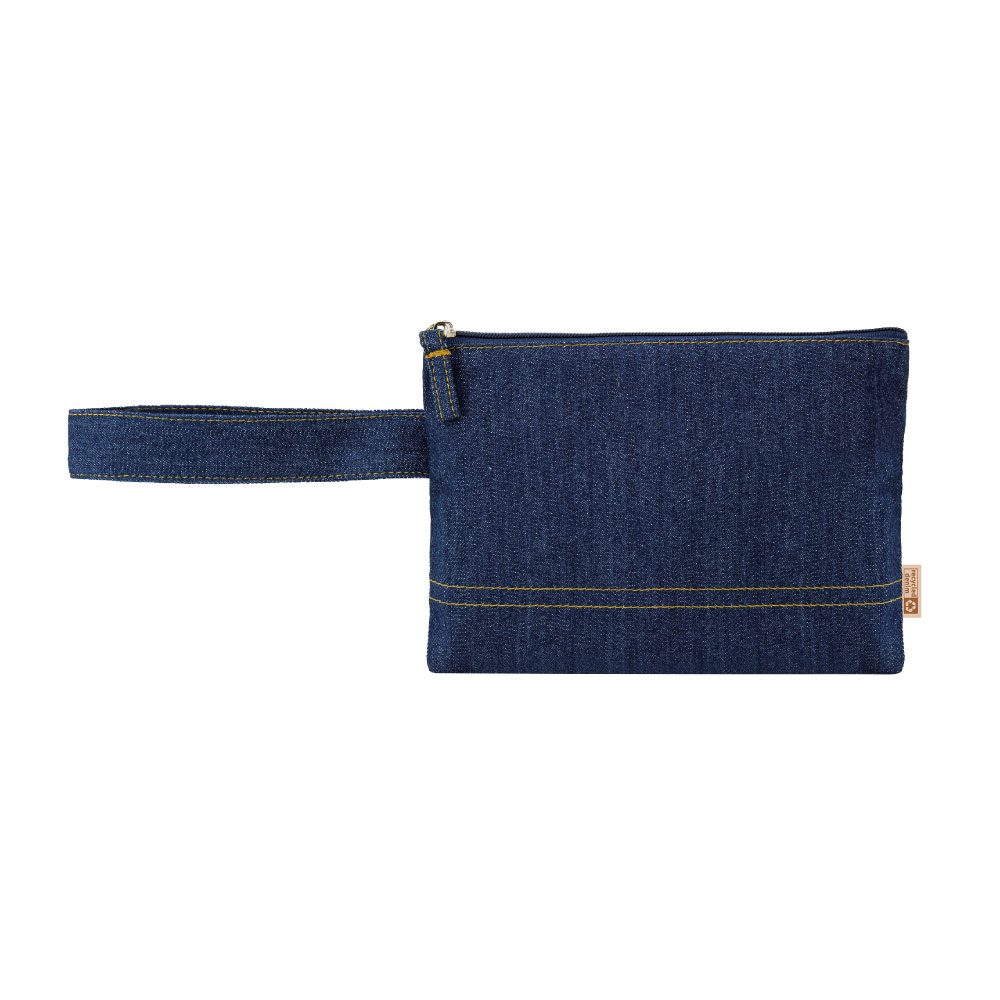 Trousse denim “Mayers” in 100% cotone riciclato (280 g/m²), leggera e resistente. Dotata di chiusura con cerniera, è ideale per organizzare accessori da viaggio e tempo libero.